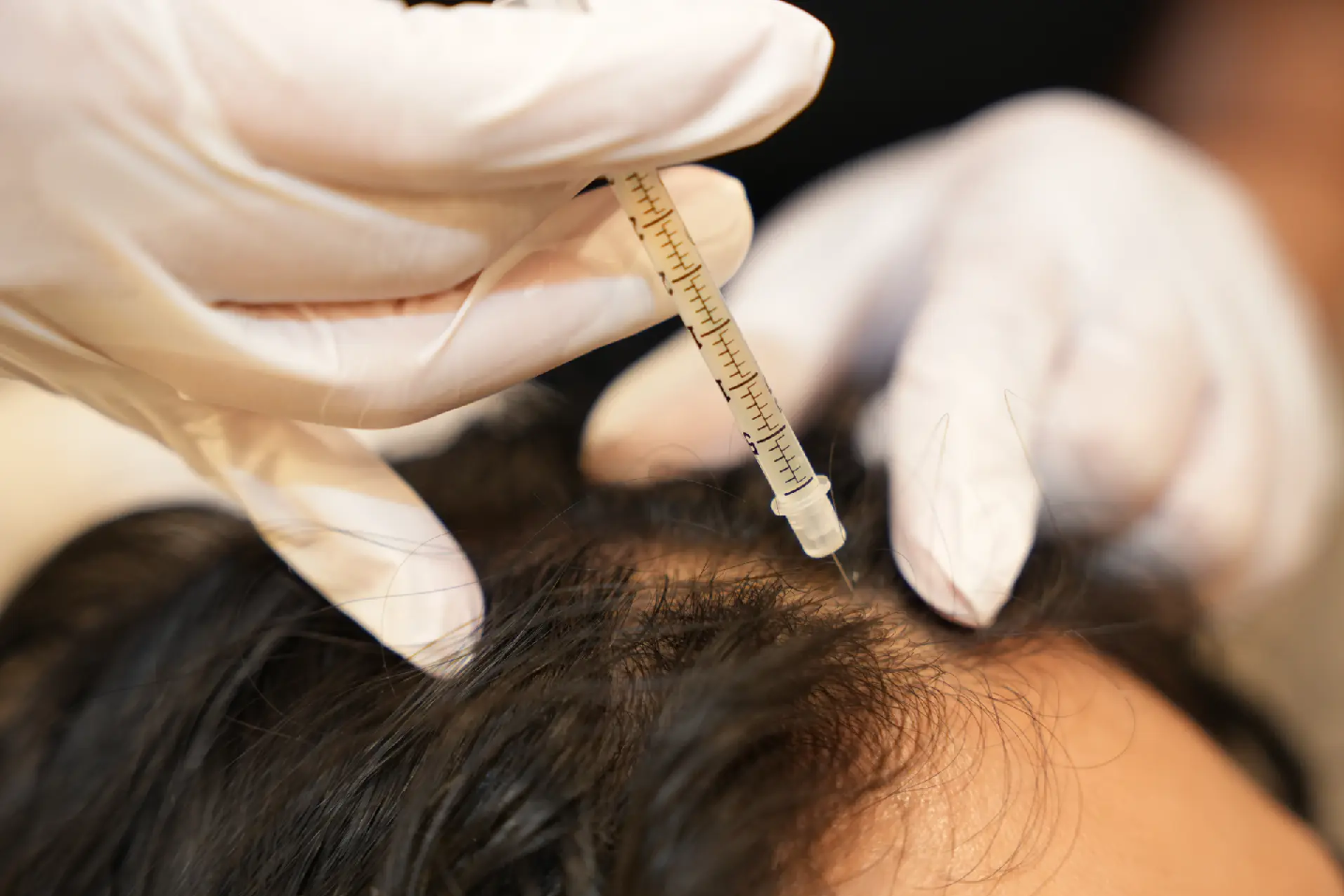 Numbing & InjectionLocal numbing applied, followed by injections into the scalp in the target areas.